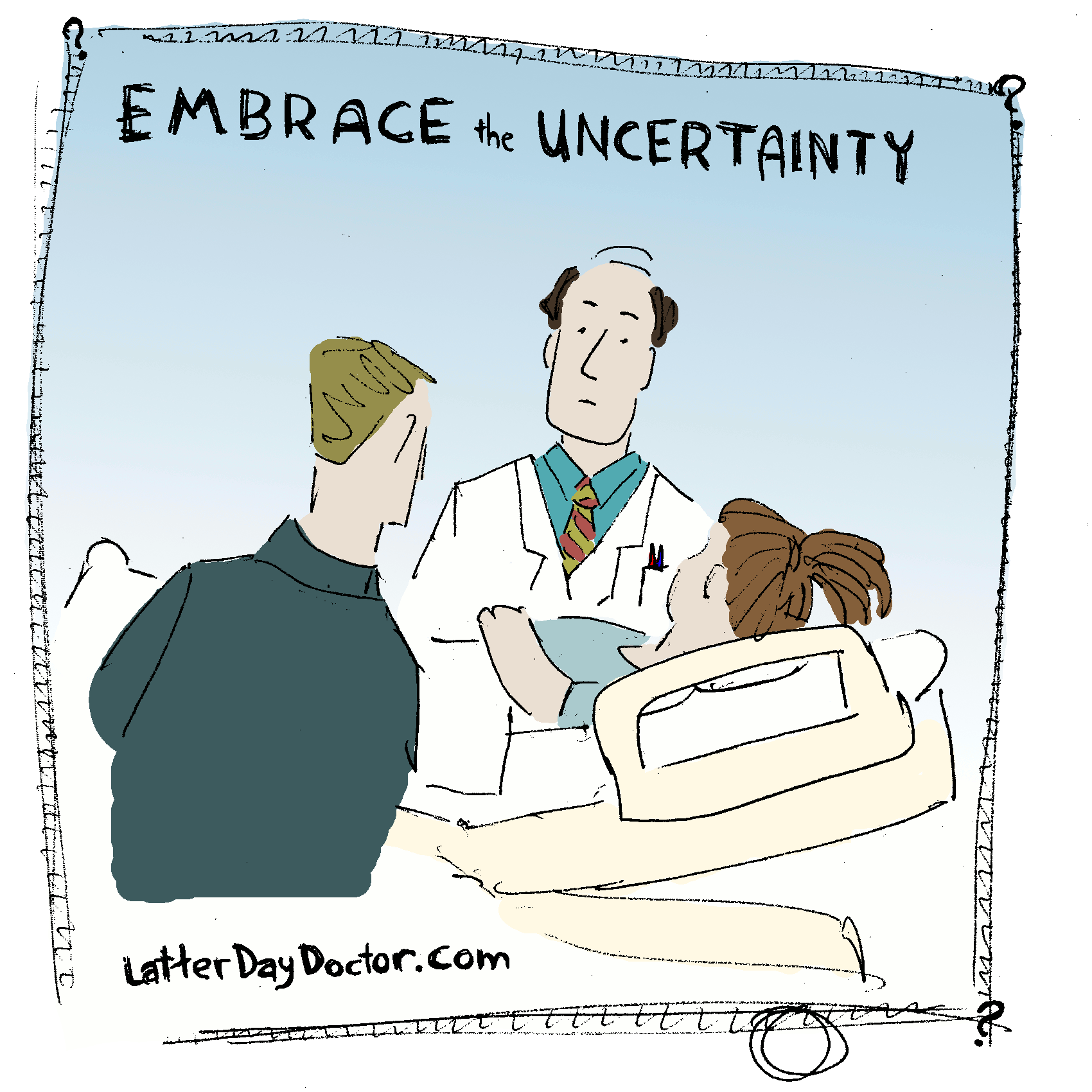 Medical doctors live with uncertainty every day. It is the water we swim in, the air we breathe. One of my colleagues, an emergency medicine specialist, once pointed to a poster displayed in a hospital conference room which said, “Do not proceed in the face of uncertainty.” (This was apparently intended as a message to improve patient safety.) My colleague concluded that if this were our prime directive then we would just close the hospital and give up trying to practice medicine.