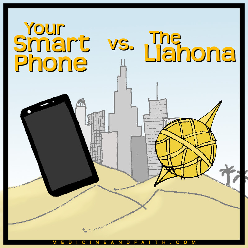 Returning to our original question, which device do you choose? If you choose the Liahona then you can be assured that the Lord will guide you, as long as you have faith and diligently heed his directions. But you will have to leave your phone behind. No internet, no maps, no messaging, no online survival skill tutorials, and no posting your daily adventures or crowdsourcing your next decisions on social media. Choosing the smart phone, on the other hand, will give you access to fantastic and useful functions, which you might not be able to live without (literally). You will also have guidance from the Lord if you choose to use it and don’t drown it out with distractions. But those distractions will surely call to you, occasionally pulling your focus away from what’s really important.