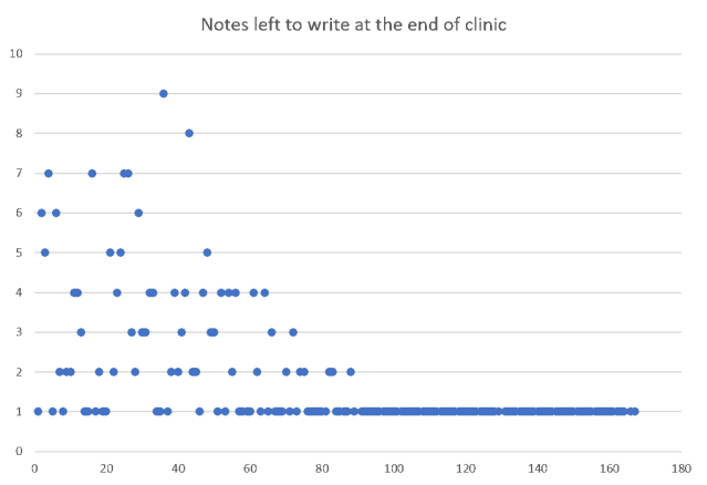 The more notes left to write, the longer it took me to wrap up and leave the clinic. That was the bottleneck, the rate-limiting step. The spreadsheet had revealed my biggest weakness, my worst inefficiency. But it didn’t tell me what to do about it.