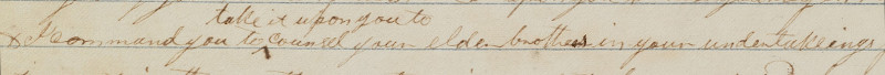 This is similar to the previous passage; the word “with” has been added after “counsel” in the current edition. The printer’s manuscript reads the same as the 1830 edition, and the sentence cannot be discerned in the original manuscript. Obviously it makes no sense for the wayward younger brother to counsel his older brothers. I wonder if this was a language construction that would have made sense to people in the 19th century? Or maybe it was simply an error.
