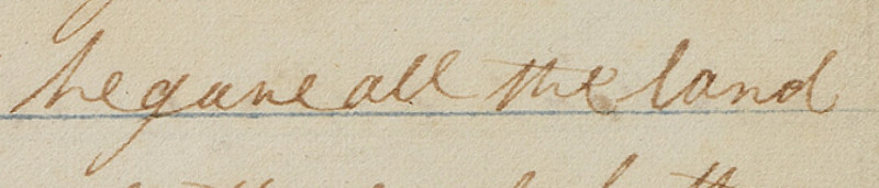 In the current edition the word “gave” is replaced with “named.” The original phrasing suggests that the writer meant to say, “he gave all the land a name,” but then the description of the geography of the land distracted the writer from completing the thought, and he skipped right to the name. Maybe this was Mormon’s error. It is uncorrected on the printer’s manuscript.