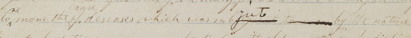 The phrase “which was subsequent to man” was replaced in later printings with “to which men were subject.” Also notice that there were a couple of transcription errors on the printer’s manuscript that were apparently corrected before or during the printing process: “move” was corrected to “remove” and the word “cause” was written above the line.