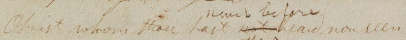 In a later printing the word “not” was changed to “never before.” The original phrasing could be misinterpreted or misunderstood as meaning that Enos was somehow not hearing the word of the Lord while receiving a revelation from him. The updated phrasing was written in the printer’s manuscript, as you can see below.