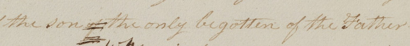 Jesus is the Son of the Father and the Only Begotten of the Father, but who is the “son of the only begotten of the father”? This is obviously an error, but because this page of the original manuscript was destroyed we can’t trace where the error occurred. The word “of” has been scratched out on the printer’s manuscript, and in current printings a comma follows the word “Son.”